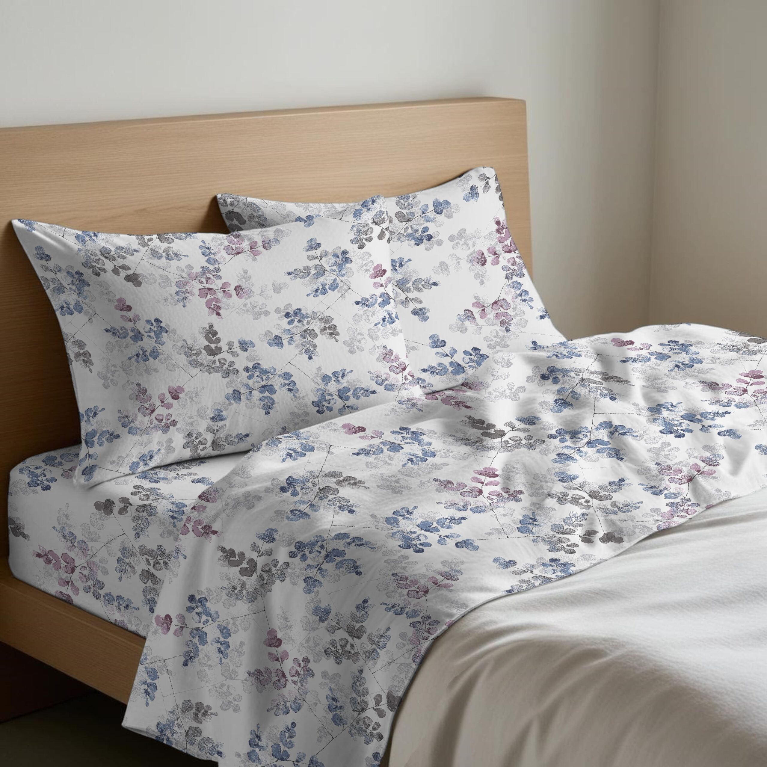 Completo Lenzuola per letto 100% puro Cotone made in Italy matrimoniale Petalo azzurro