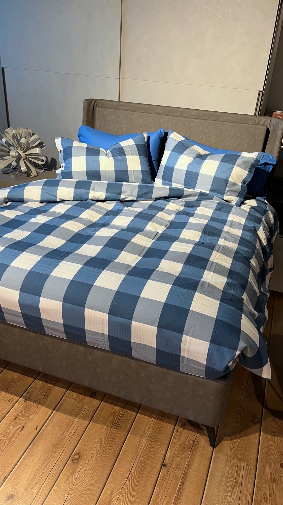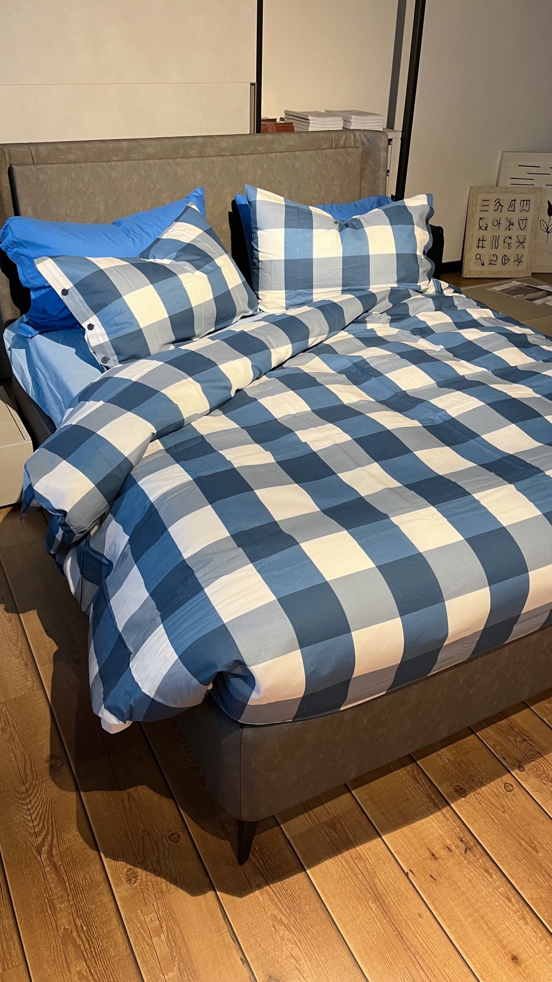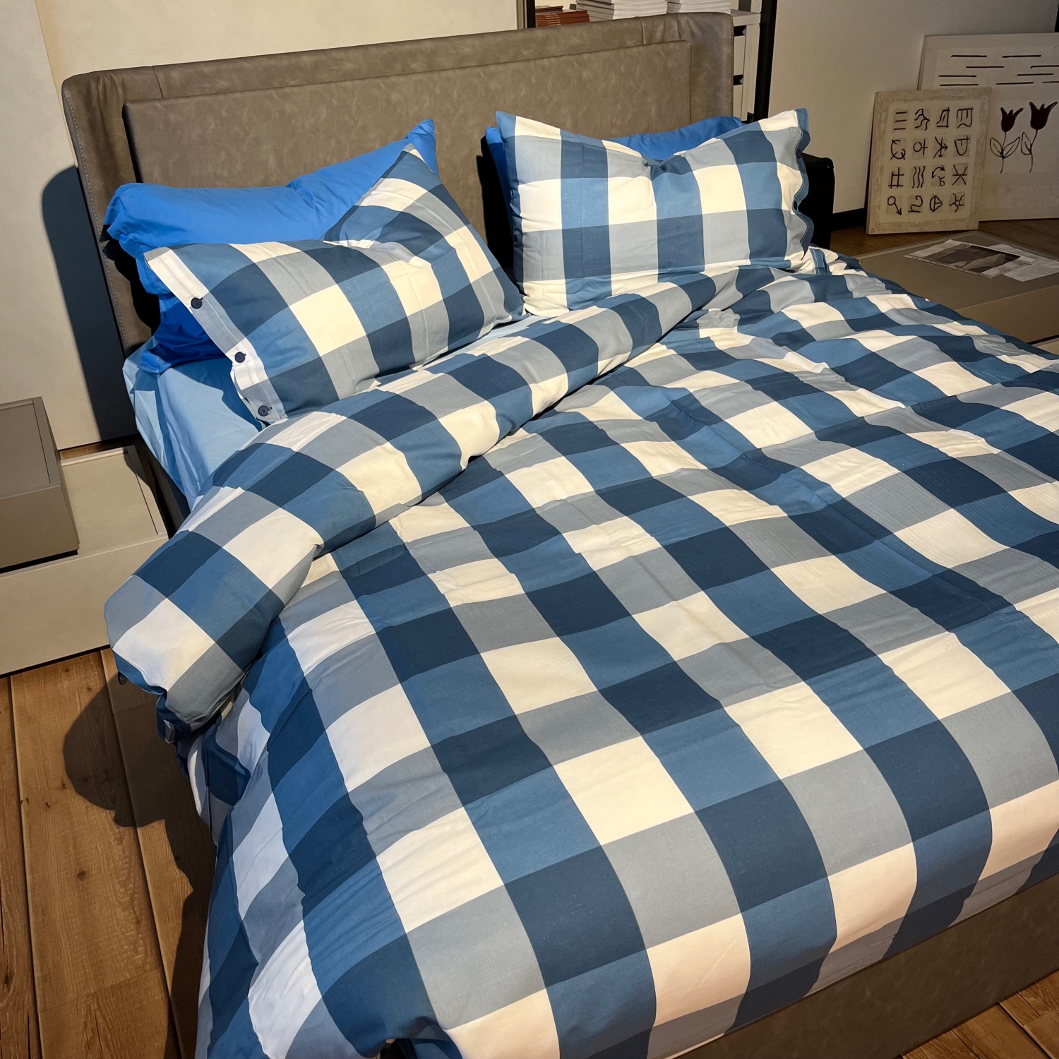Parure Copripiumino 100% puro cotone matrimoniale Quadretti Blu