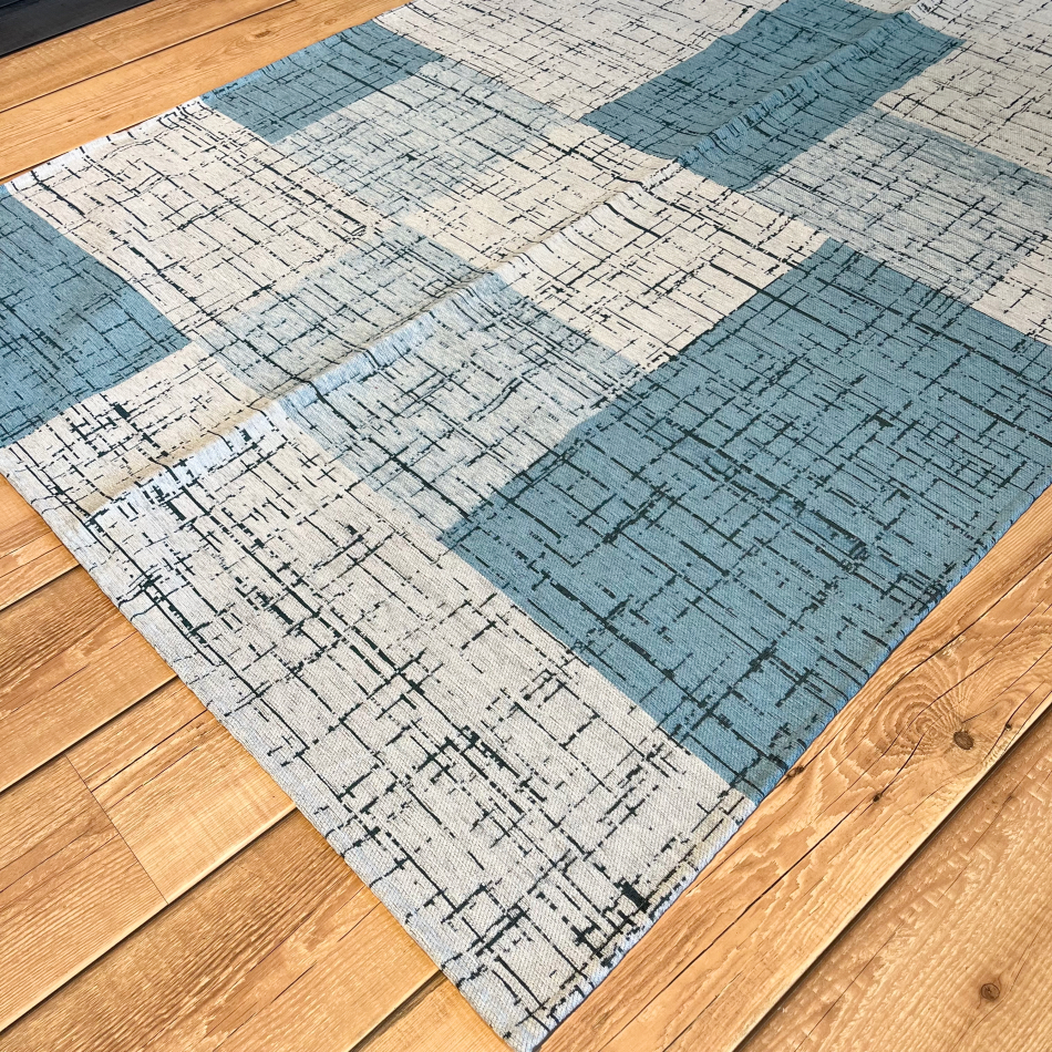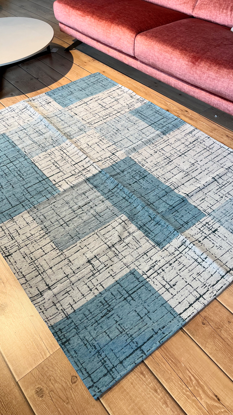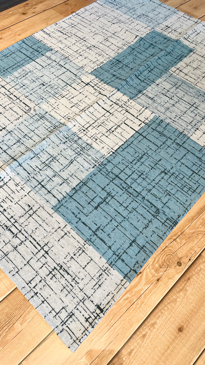 Tappeto ciniglia lavabile antiscivolo Quadri azzurro