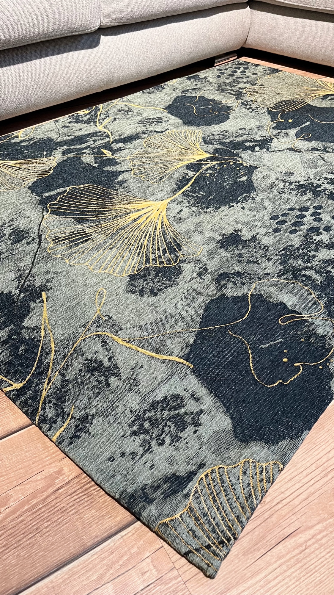 Tappeto e passatoia ciniglia lavabile antiscivolo Ginko Verde Oro