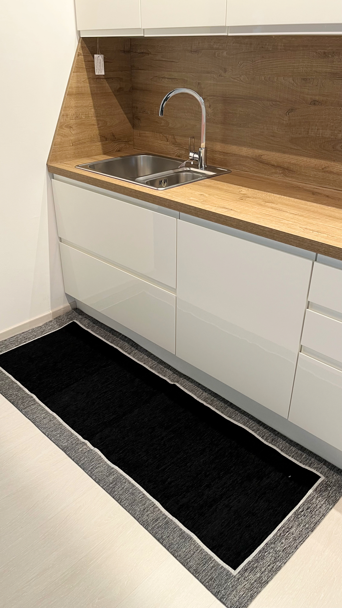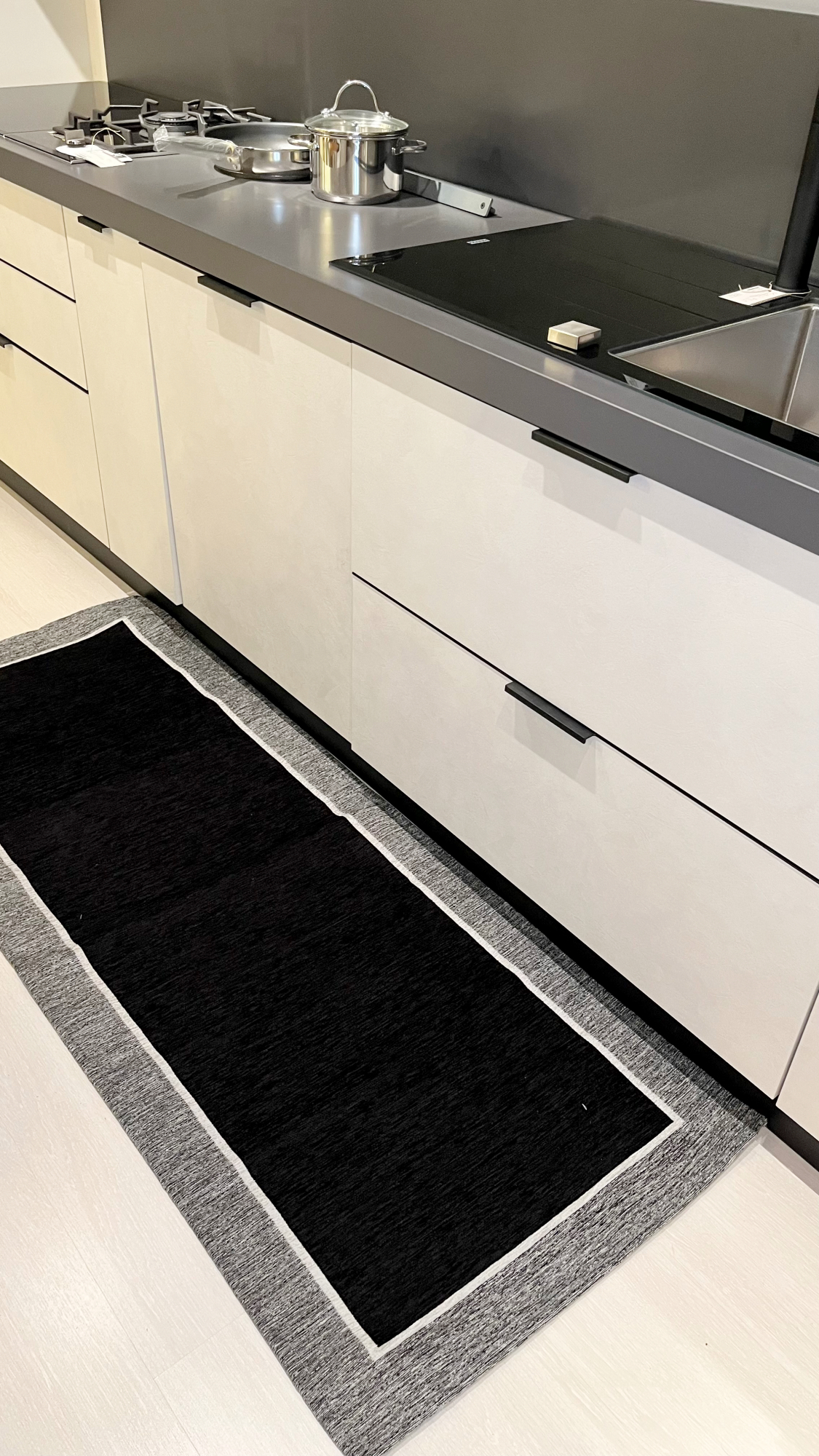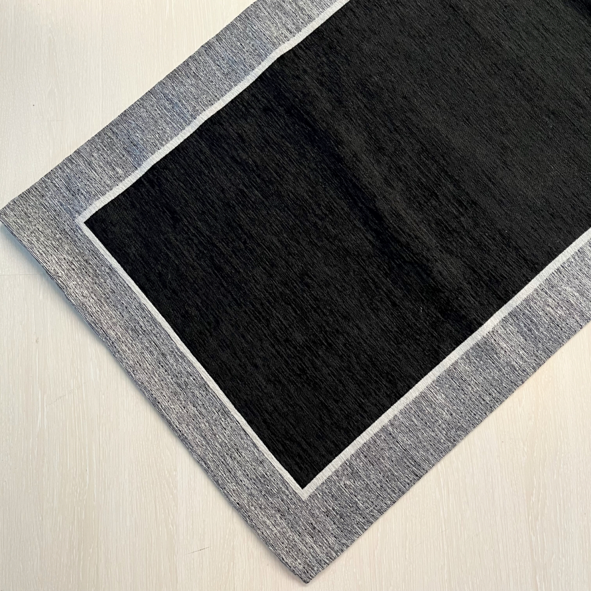 Tappeto e passatoia ciniglia lavabile antiscivolo Tinta Unita Nero bordo grigio