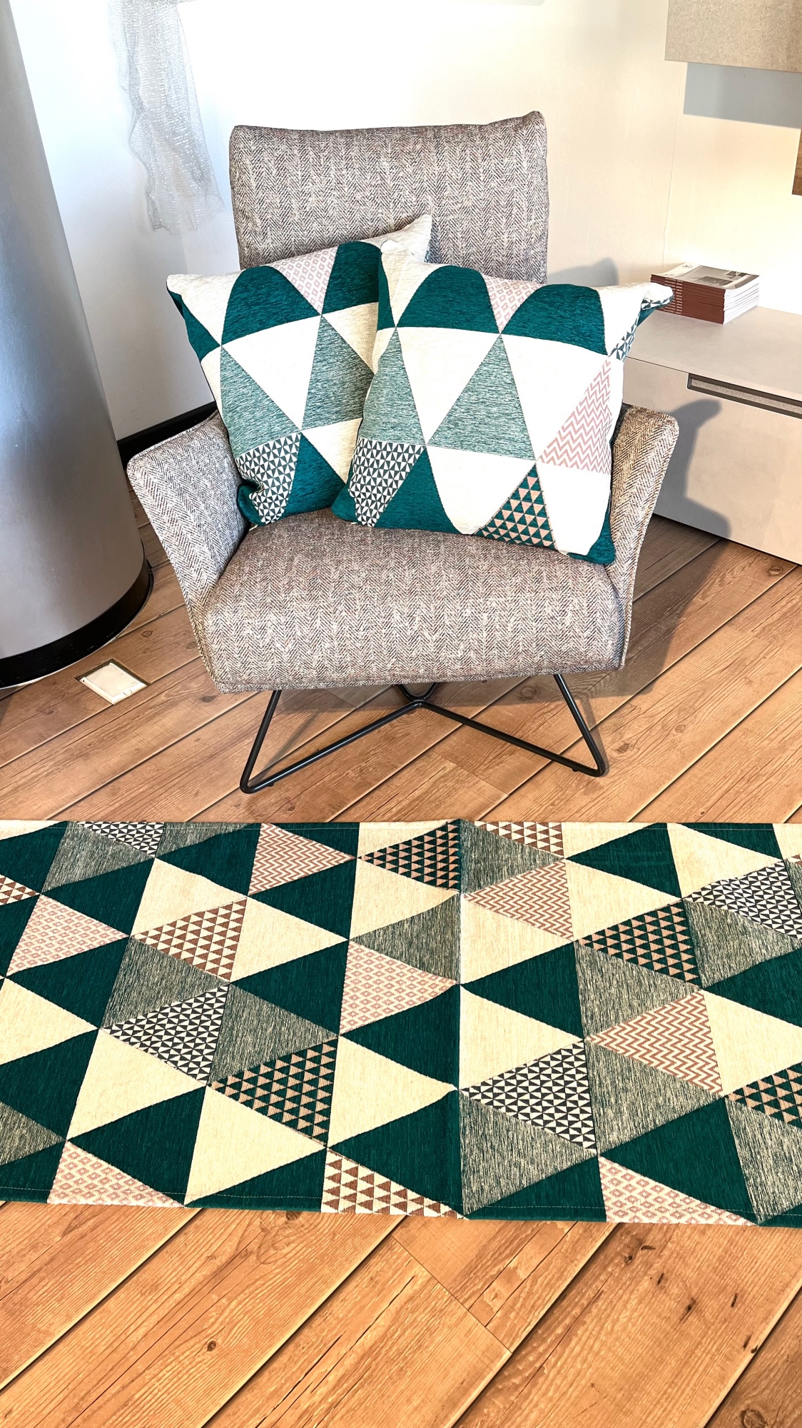 Tappeto e passatoia ciniglia lavabile antiscivolo Triangoli Verde petrolio