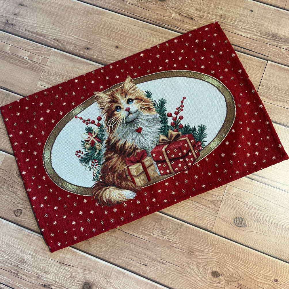 Tappeto in ciniglia lavabile antiscivolo natalizio 52X80 Gatto