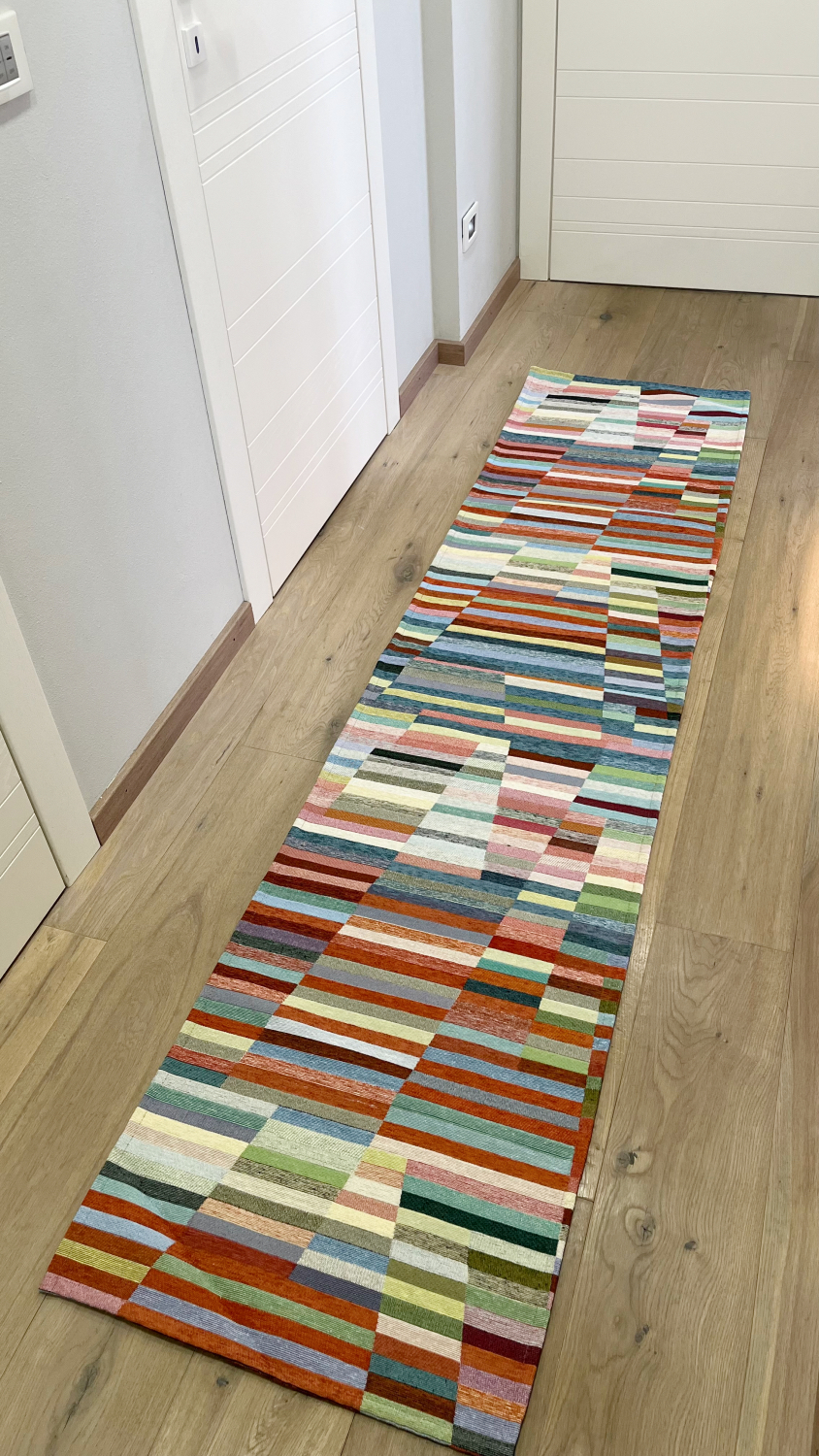 Tappeto passatoia realizzato in filati di morbida ciniglia, leggero e con fondo antiscivolo.