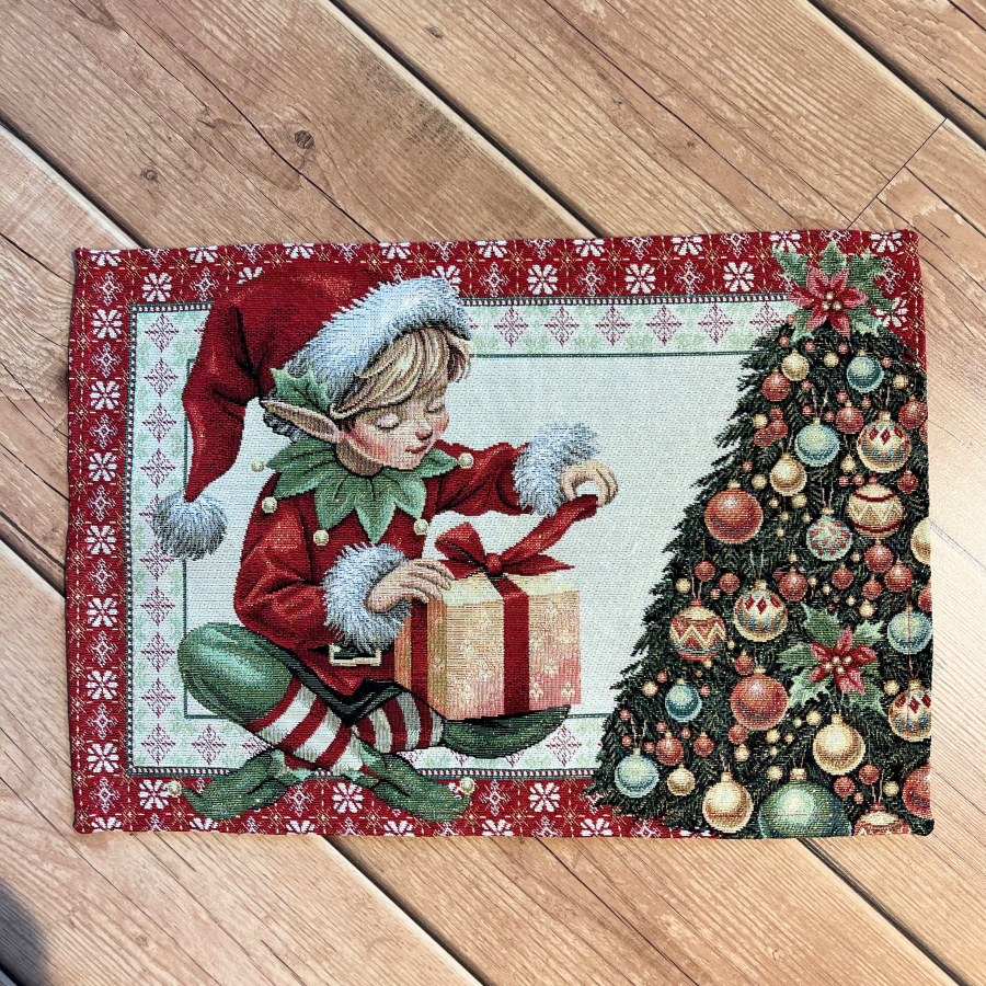 Tovaglietta all’americana natalizia in Lurex 36×50 Elfo porta regali